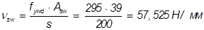 погонное усилие, воспринимаемое хомутами на единицу длины.