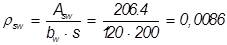 Принимаем по конструктивным требованиям одну сетку с поперечной арматурой Æ6 S400 с шагом 300 мм