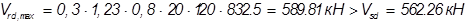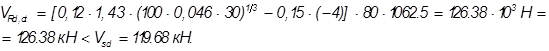 Таким образом, прочность сечения балки при действии поперечной силы обеспеченна.