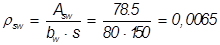 Прочность расчетного сечения при действии поперечной силы обеспеченна. В стенке балки в пределах средней половины пролета поперечную арматуру устанавливаем по конструктивным требованиям. В балке по толщине стенке установлена одна сетка. По конструктивным требованиям