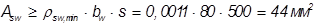 Площадь вертикальной арматуры класса S400 (fyd = 365МПа)