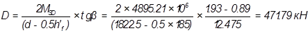 Вертикальное усилие, отрывающее полку балки от стенки в коньке, определяют как сумму проекций на вертикальную ось усилий сжатия в верхней полке балки