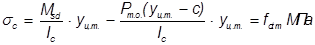 - максимальные напряжения в сжатом бетоне от усилия предварительного напряжения и внешней нагрузки.