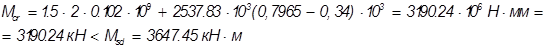 Таким образом, прочность сечения балки при действии поперечной силы обеспеченна.