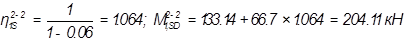 Так как влияние перемещений узлов на расчетные моменты и усилия превышают 5%, то каркас смещаемый и его расчет необходимо вести согласно п. п.7,1,3,17-7,1,3,21 СНБ 5,03,01-02, Однако при этом требуется многократное вычисление критических сил во всех колоннах рам при различных комбинациях нагрузок. В связи с этим дальнейший расчет колонн выполняем, применяя требования норм, относящиеся к несмещаемым каркасам. Расчет выполняем согласно п. п.7,1,3,14-7,1,3,16 СНБ 5,03,01-02.