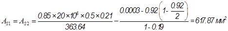 Принимаем 2 стержня диаметром 20 мм AS! =628 мм2.