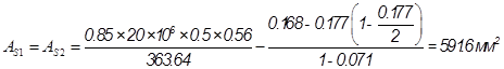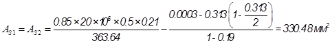 Принимаем 2 стержня диаметром 20 мм AS! =628 мм2