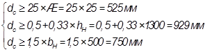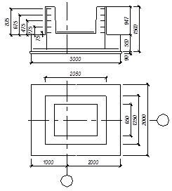 Окончательно принимаем dC=950 мм. Глубина стакана с учетом бетонной подливки, dР=dC+50=950+50=1000 мм. Глубина заложения фундамента d’=1.65 м. Общая высота фундамента d=2.65-0.15=2.5 м.