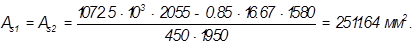 Принимаем по конструктивным соображениям 4 стержня диаметром 10 мм AS=314 мм2