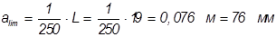 Предельно допустимый прогиб среднего по длине балки сечения при действии постоянных и временных длительных нагрузок (с учетом выгиба от усилия предварительного обжатия) по таблице 19 приложения 10 СНиП 2.01.07-85 “ Нагрузки и воздействия “ составит