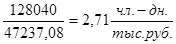 Wобщ. = 47238,08/124 = 380,94 тыс.руб./чл.-дн.