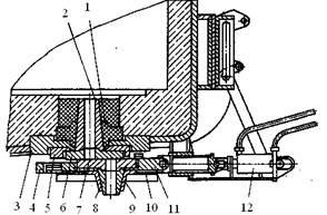 9 – корпус коллектора; 10 – экран; 11 – нижняя рама; 12 – гидроцилиндр.
