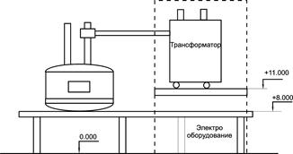 При расположении трансформатора на отметке 0,000 есть опасность попадания металла на трансформатор. Целесообразнее размещать трансформатор на уровне рабочей площадке.