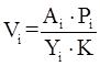 Yi – величина насыпной массы i-го материала в бункере, т/м;