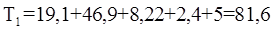 T1 – задолженность ковша на одну плавку, мин.;