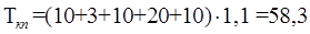 - разгрузка бадей в печь t5 = 6 мин;