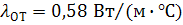 - сопротивление теплоотдачи внутренней поверхности ограждения, для стен и покрытий