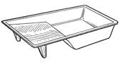 Такая ванночка имеет два отделения: глубокое с гладкой поверхностью – для набора краски на валик и мелкое с ребристой поверхностью – для удаления сгустков краски с валика.