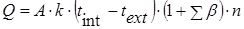 Основные и добавочные потери теплоты следует определять суммируя потери теплоты через отдельные ограждающие конструкции Q, Вт, с округлением до 10 Вт для помещения по формуле: