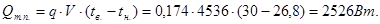 - тепловая мощность теплопоступлений от осветительных приборов,