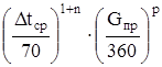 Поверхностная плотность теплового потока qпр, Вт/м2, передаваемого через 1м2 площади отопительных приборов, определяется по формуле