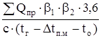 Если Gпр выражен в кг/ч, то в числитель в формуле вводят множитель 3,6 для перевода в кДж/ч [ при удельной массовой теплоёмкости воды с=4,187 кДж/кгоС].