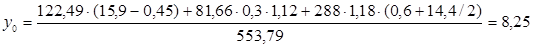 Расстояние от верхней грани панели до центра тяжести приведенного сечения h - yo= 15,9 - 8,25 = 7,65 см.