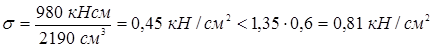 =1,35 кН/см2 – расчетное сопротивление фанеры на растяжение, табл. 10 СНиП II-25-80 Деревянные конструкции [3];