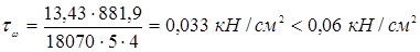 =0,06 кН/см2– расчетное сопротивление скалыванию клеевых швов между шпонами фанеры, табл. 10 СНиП II-25-80 Деревянные конструкции [3];