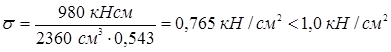 =1,0 кН/см2 – расчетное сопротивление фанеры сжатию, табл. 10