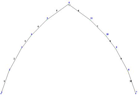 Зерносклад пролетом 60 м представляет собой стрельчатую арку. Геометрическая схема – трехшарнирная статически определимая арка.