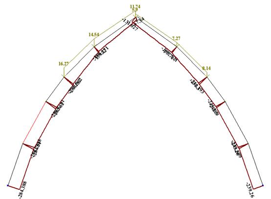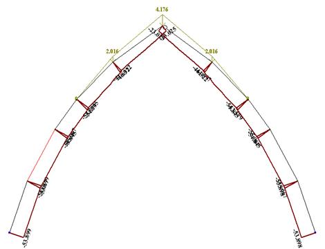 Рис.8 Эпюра продольных сил (Снеговая нагрузка – 2 вар.)