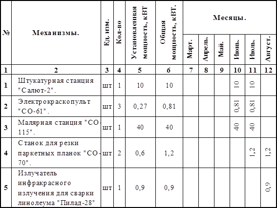 На основание календарного плана производства работ, графика работы машин и стройгенплана определить электропотребителей и их мощность (кВТ), в период максимального потребления электроэнергии.