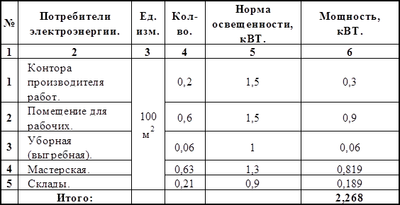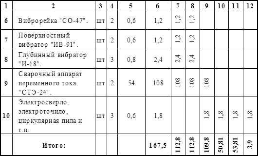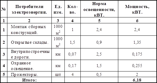 Электроэнергия на стройплощадке потребляется для питания машин, т.е. производственных нужд, для наружного и внутреннего освещения и на технологические нужды.