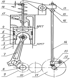 Рис. 1. Схема кривошипно-шатунного и газораспределительного механизмов