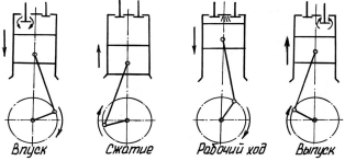 Рис. 2. Схема рабочего цикла четырехтактного двигателя