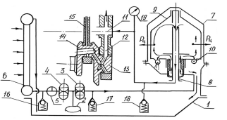 Контроль давления осуществляется по манометру 19. Оптимальное давление составляет 0,25 .0,35 МПа.