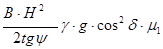 где W3 – сопротивление перемещению стружки грунта вверх по отвалу; δ=50° - угол резания; μ1 = 0,7 - коэффициент трения грунта по стали;