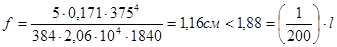 Проверяем только прогиб балки, т. к. W = 184 см3 > Wтр = 145 см3.