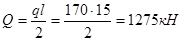 Q1 = q·(l/2 – x) = 170·(15/2 – 2,5) = 850 кН