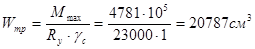 σ = M/W = 4781·105/21087 = 226,7 < 230 МПа = Ryγc,