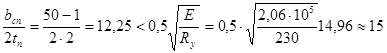 Проверяем принятую ширину (свес) поясов bn по формуле, исходя из обеспечения их местной устойчивости: