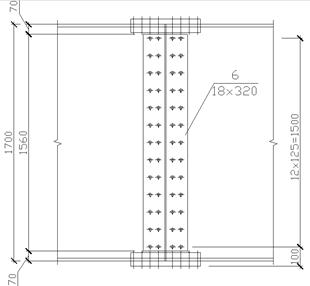 Стык стенки. Стенку перекрываем двумя вертикальными накладками сечением 320×1560×8 мм.
