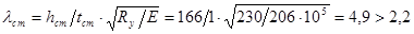 λст = 2,2 – при действии местной нагрузки на пояс балки.
