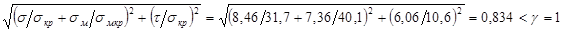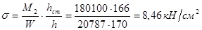 σм = 7,36 кН/см2 (из расчета балки на устойчивость)