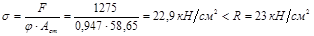 σ = N/φA = 2540/0,8·123 = 25,8 кН/м2 < R = 28 кН/см2