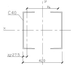 Полученное расстояние должно быть не менее двойной ширины полок швеллеров плюс зазор, необходимый для оправки внутренних поверхностей стержня bтр = 2·115 + 100 = 330 мм < 42 см, следовательно принимаем ширину колонны = 420 мм.