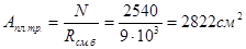 Aтр = N/(φ·R) =2540/0,785·28 = 115,5 см2,