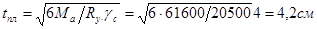 Требуемую толщину плиты определяем по Ма: