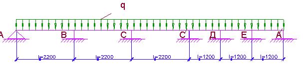 Расчетная схема плиты представляет собой многопролетную неразрезную балку, загруженную равномерно распределенной нагрузкой (рис.).